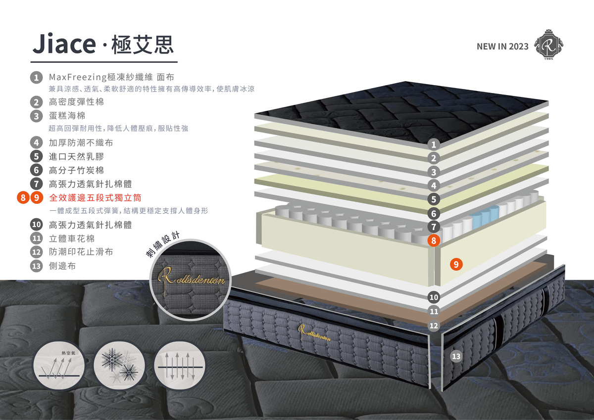 使用日本MaxFreezing纖維,兼具涼感、透氣、柔軟舒適的特性擁有高傳導效率,使肌膚冰涼,極凍紗是由高分